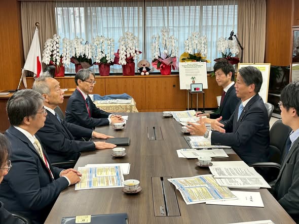 続いて、高円宮妃殿下ご臨席の下、東京ビッグサイトで開催されたインテリアの国際見本市「JAPANTEX2025」開会式に出席し祝辞を申し上げた後ブースを視察しました。 役所に戻って、価格転嫁・取引適正化に向けた業界団体への要請。 お昼に衆議院経済産業委員会が開かれ、所信表明。 午後は、福島県相双地区の商工会連絡協議会の皆様が上京されご要望を伺いました。続いて福岡県知事・県議会議長よりご要望を伺いました。 空き時間の間に翌日の会議や来客対応の打ち合わせ、所管事項の説明を受けるなどしています。